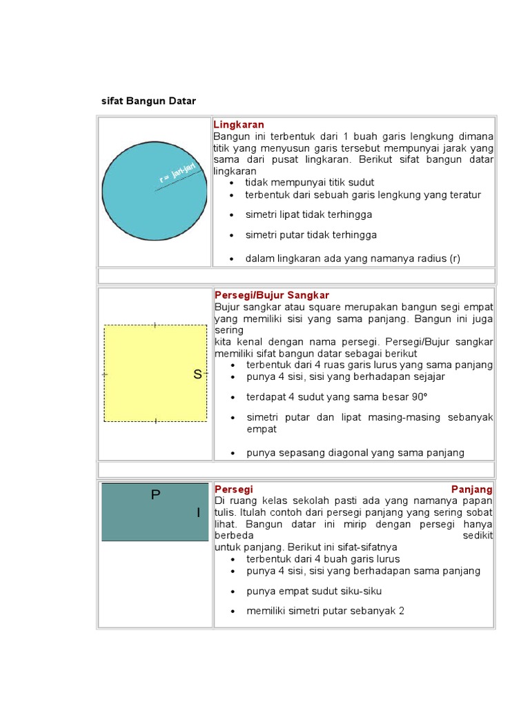 Bangun datar adalah salah satu topik yang mempelajari objek atau bentuk berbentuk 2 dimensi. Rumus segitiga sama sisi mempunyai formula yang istimewa, yang a, b, c = sisi segitiga. Memiliki 4 buah sisi dan 4 buah titik sudut. Pada bangun datar terdpat dua jenis simetri yaitu simetri putar dan simetri lipat.