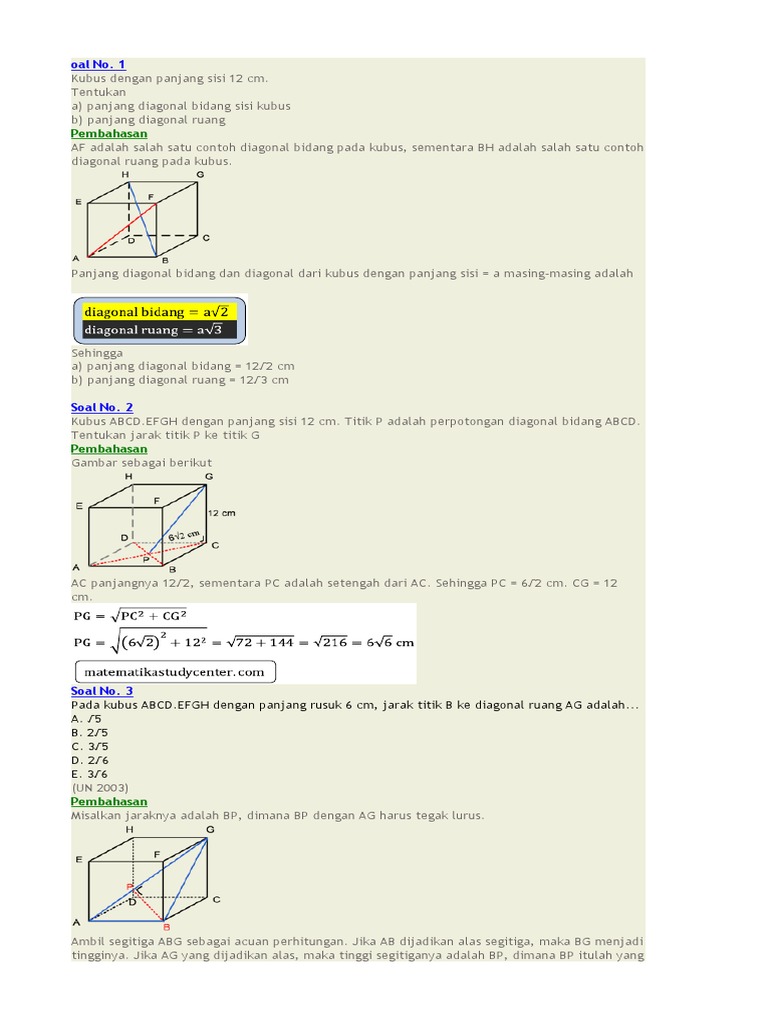 16+ Kubus Abcd.efgh Memiliki Panjang Rusuk 6 Cm. Jarak Titik B Ke Ce Adalah....cm